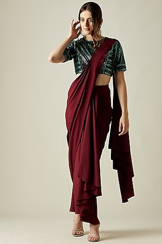 Wine Saree Buy Wine Color Designer Indian Saree Online